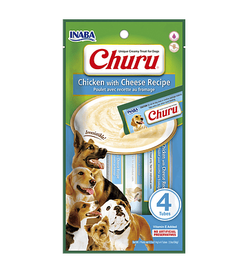 Snack para perros. Deliciosos palitos horneados rellenos con la crema de Churu.Libre de granos.Sin colorantes ni preservantes artificiales.Paquete ...