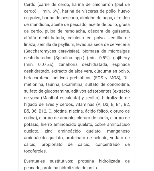 Elaborado con cerdo como fuente principal de proteína animal (96% de origen animal), este alimento ayuda a mantener la masa muscular, controlar el peso y aportar la energía que tu felino necesita en su día a día.